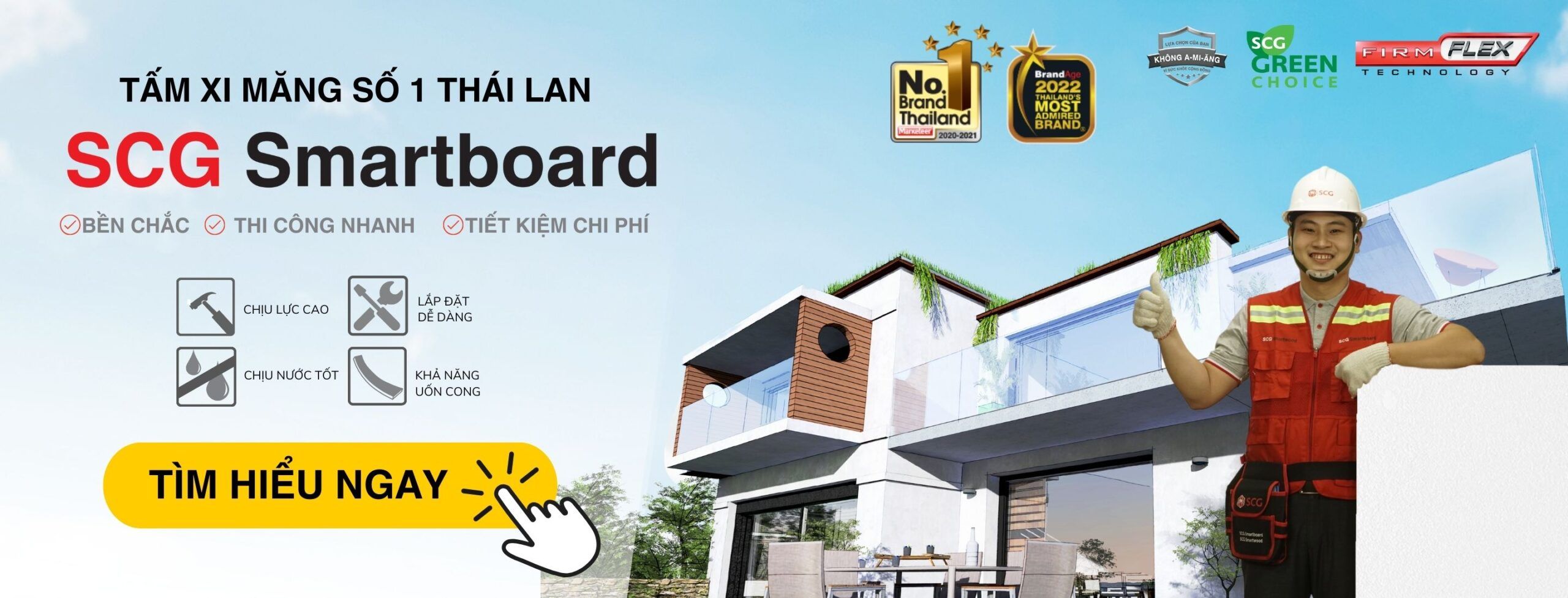 Với hơn 100 năm kinh nghiệm trong kinh doanh lĩnh vực Vật liệu xây dựng, SCG gây dựng niềm tin với khách hàng bằng sự khác biệt độc đáo: Chất lượng tốt nhất trên từng phân khúc. Từ các sản phẩm chủ lực như xi măng, ngói, tấm cemboard, tấm xi măng giả gỗ, bê tông nhẹ cho đến loại vật liệu xây dựng hiện đại khác, SCG luôn chú trọng để mang đến giải pháp không gian sống đổi mới sáng tạo, góp phần vào sự phát triển thịnh vượng và cuộc sống tốt hơn cho người dân Việt Nam.